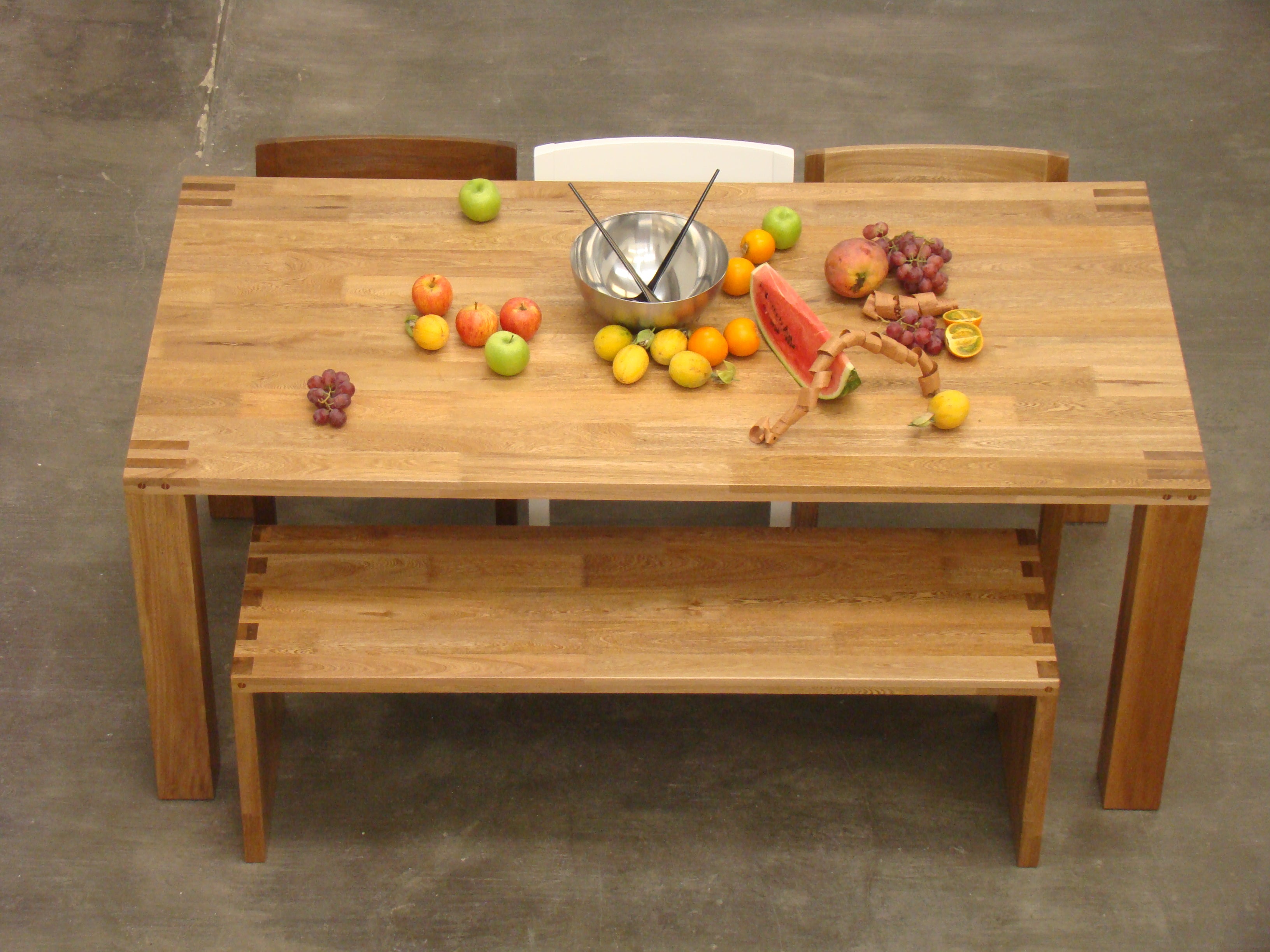 Solid wood with special joint details, finish natural solid Colombian oak wood.
