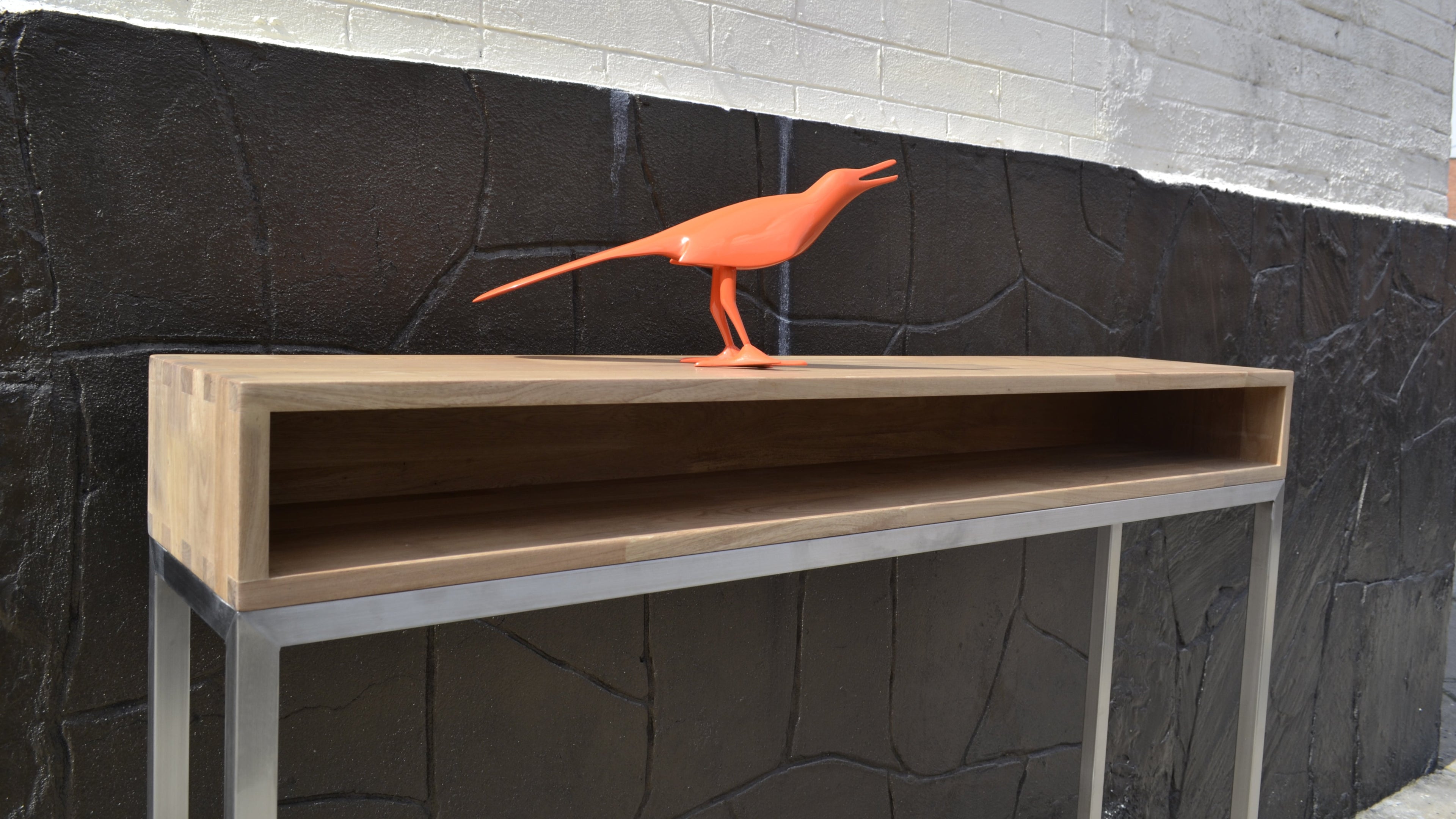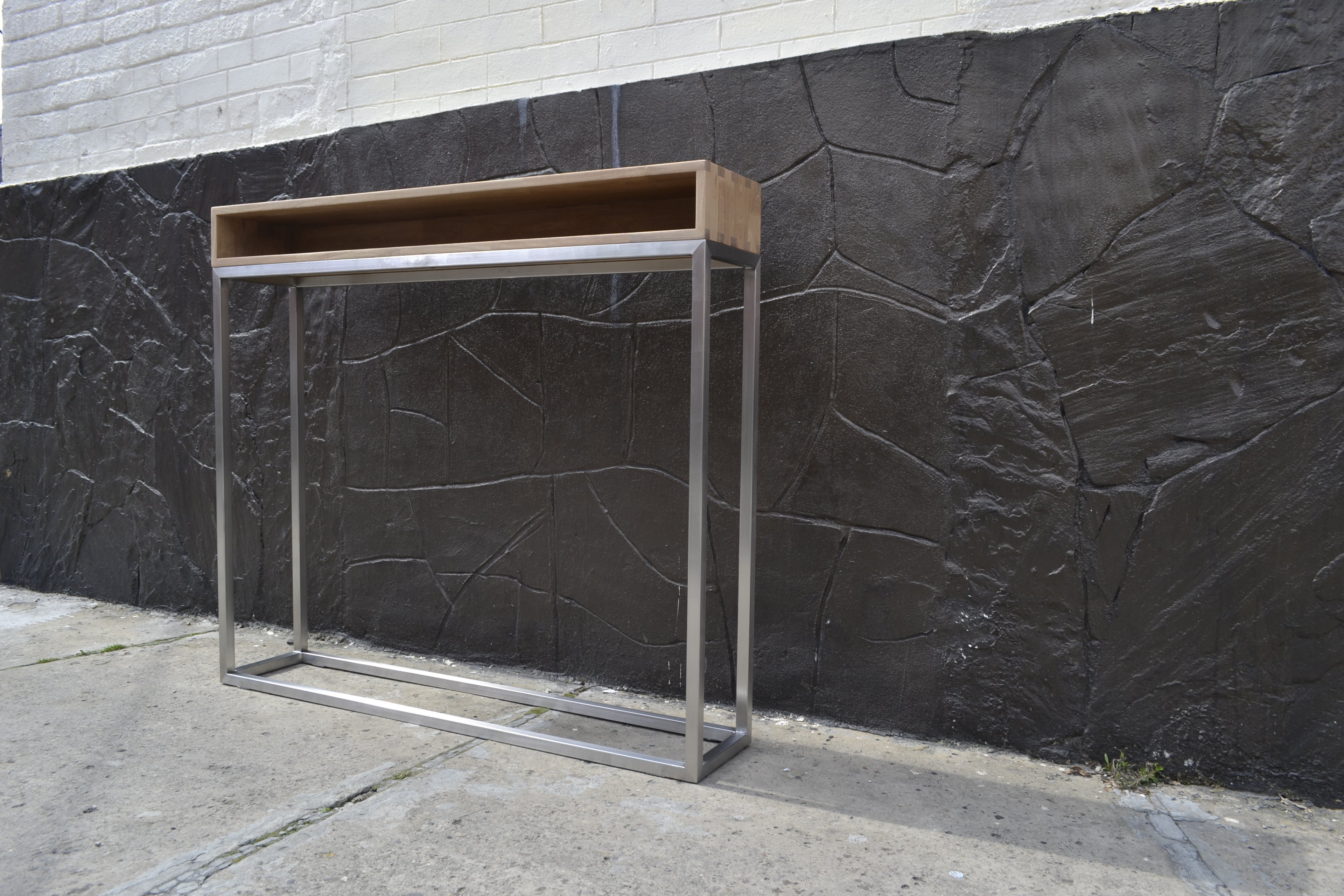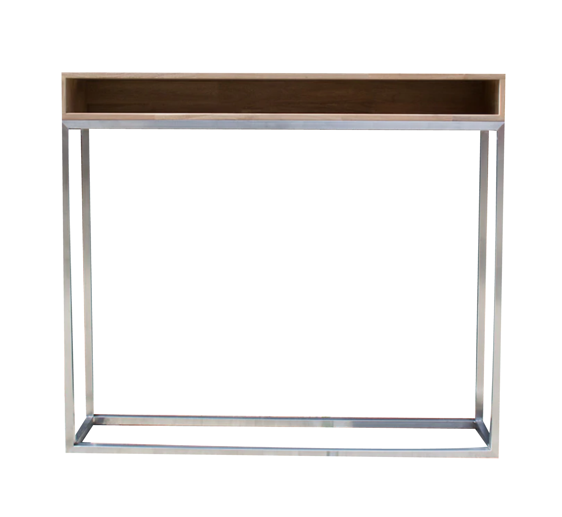 This console manages to propose itself as a very modern piece of furniture, thanks to the smooth combination of stainless steel and natural wood. Find it in different sizes and finishes.